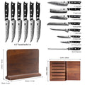 Comprend 8 couteaux de cuisine essentiels, 6 couteaux à steak, un aiguiseur, un bloc à couteaux à steak et un bloc magnétique en acacia — idéal pour la préparation et le service.