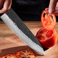 Fabriquée en véritable acier Damas forgé, avec un noyau en acier poudré 10Cr15MoV, cette lame est forgée avec précision en 67 couches aux motifs ondulés élégants. Elle offre une dureté exceptionnelle et un tranchant durable, faisant de ce couteau un allié fiable en cuisine.