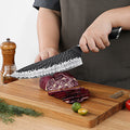 Los cocineros generalmente coinciden en que las hojas de cuchillos de acero inoxidable de tipo alemán son más resistentes que las hojas de tipo japonés. Su durabilidad permite usarlo para más tareas de corte y picado.