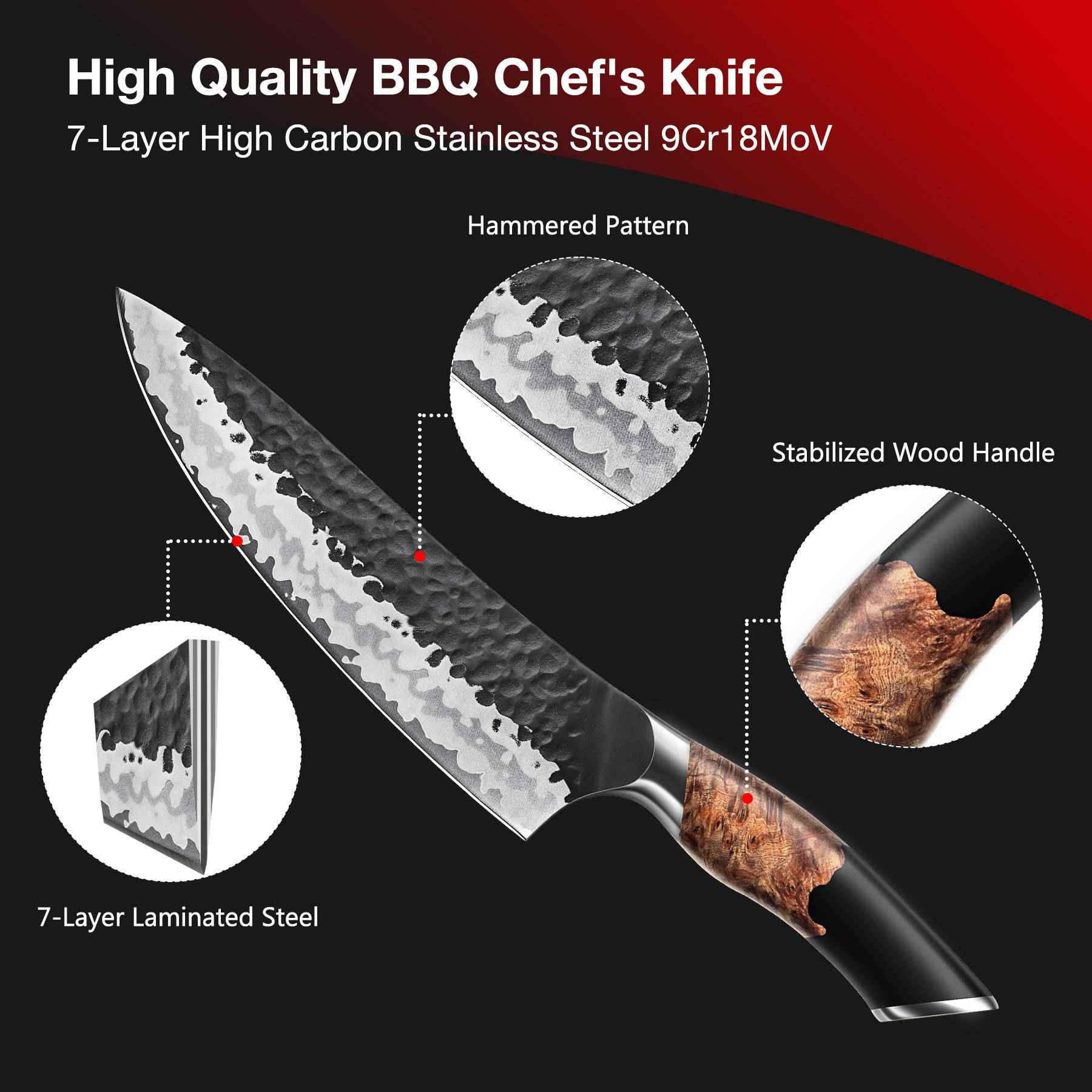 Série Tengu | Couteau de Chef BBQ+Porte-couteaux magnétique