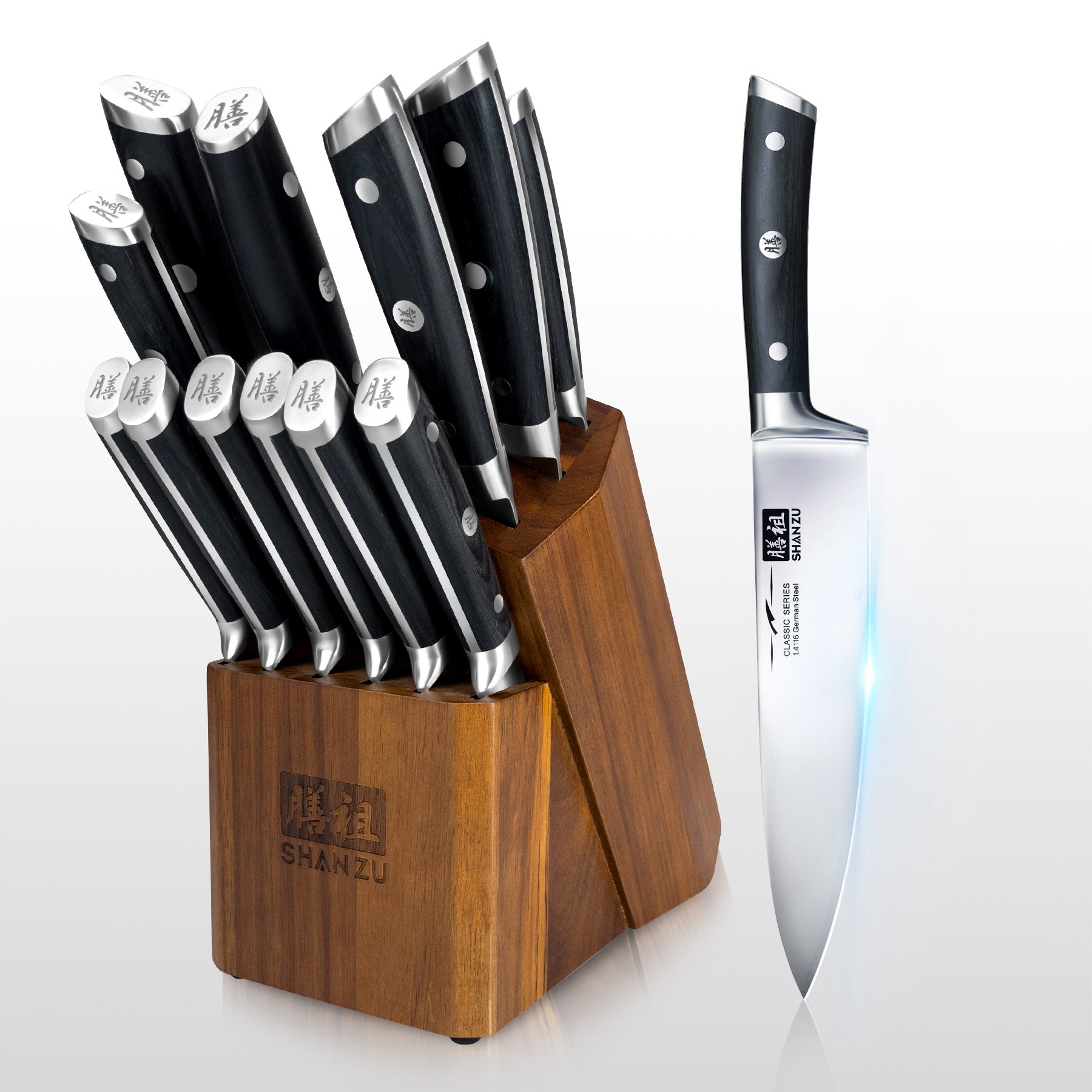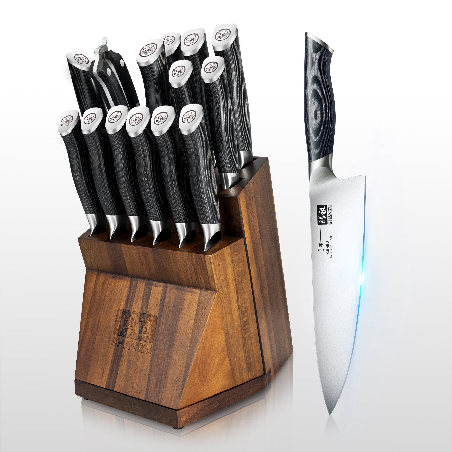 Ensembles de blocs de couteaux de cuisine en acier japonais 16 pièces | Genbu