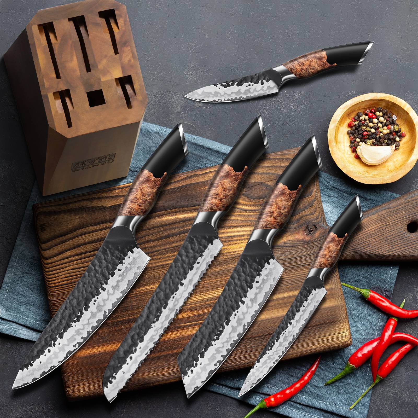 SHAN ZU Série Pro – Ensemble 4 pièces Damas + Barre aimantée en bois