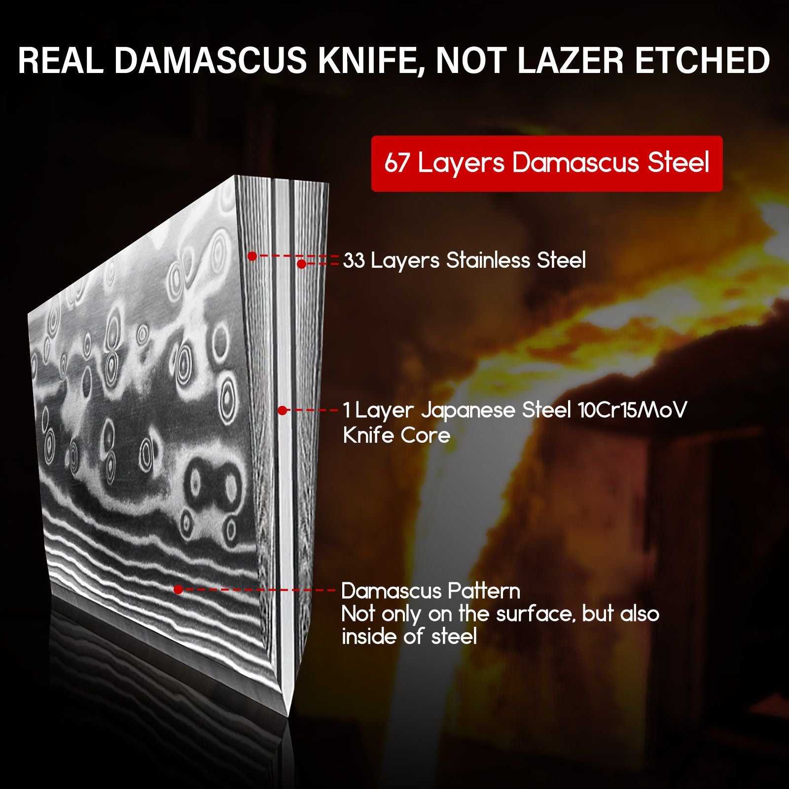 White Tiger Série | Couteau de chef Damas+Porte-couteaux magnétique