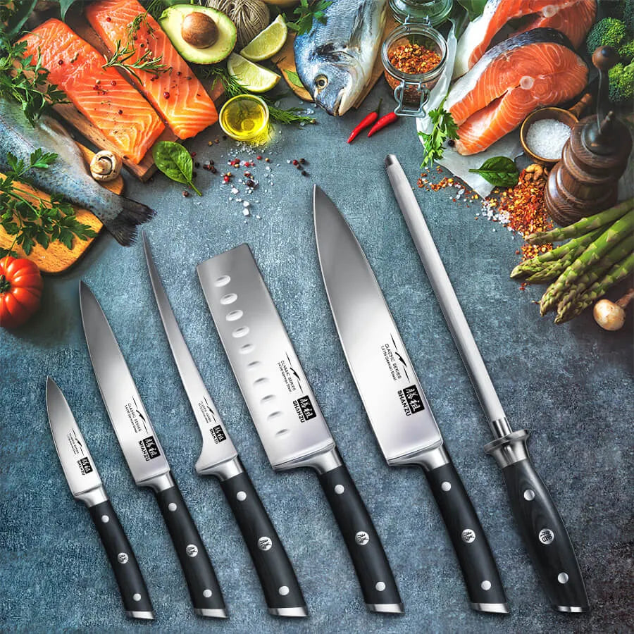Série classique | SHAN ZU Couteau à Filet 7" +Porte-couteaux magnétique