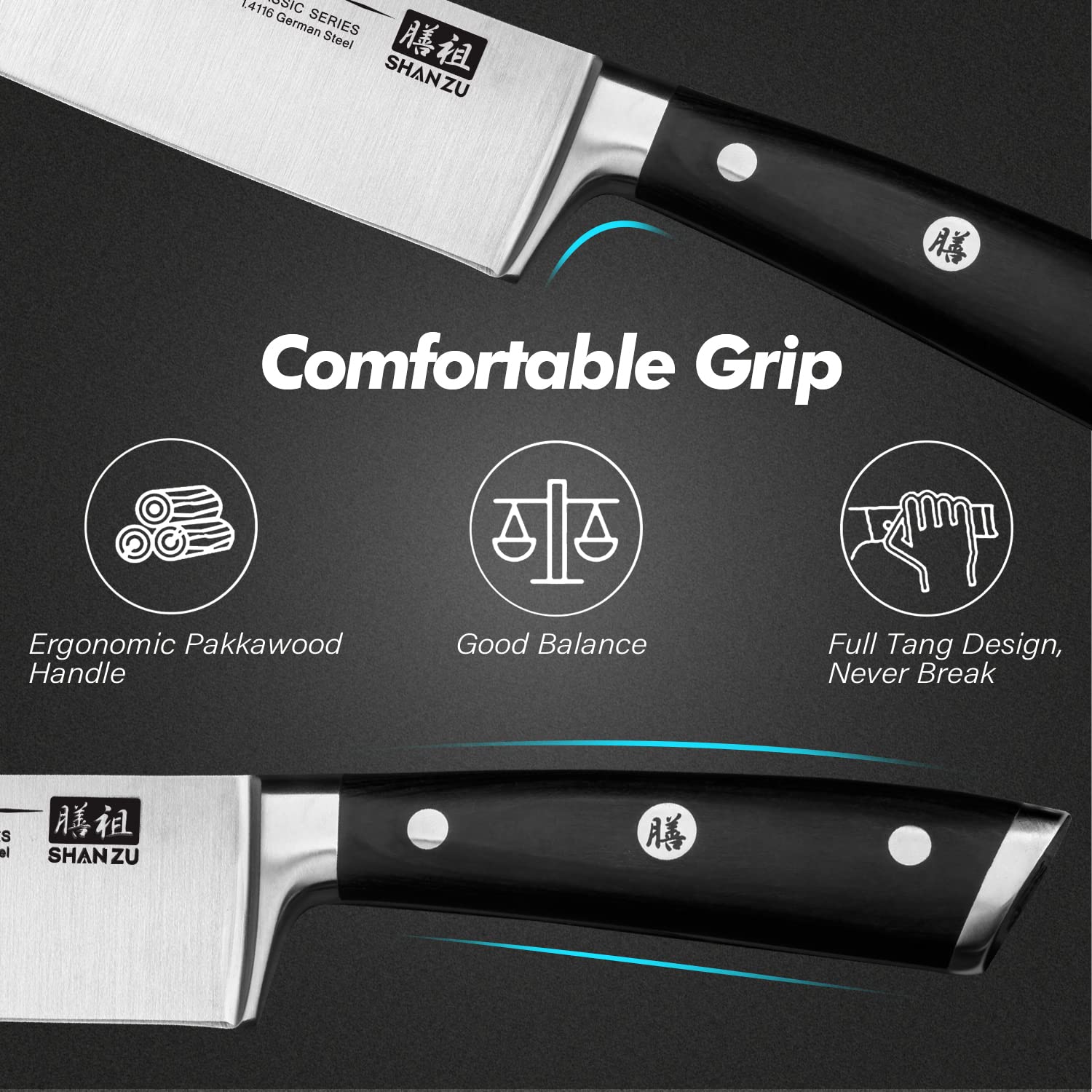 Série White Tiger | SHAN ZU Set de Couteaux de Cuisine 3 Pièces+ Barre aimantée en bois